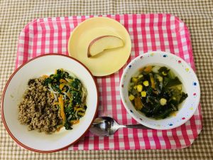 最後に、ⒶⒷをお皿に盛りつけ、ご飯を入れていただきます。