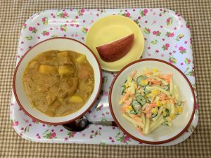 今日は、お別れ会があり、給食はひまわり組さんのリクエスト献立でした。