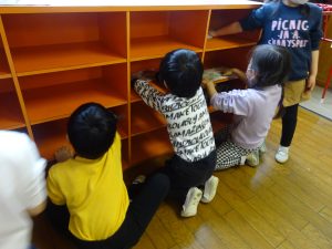 今日で最後の保育園のひまわり組さんは、みんなでお部屋のお掃除をしました。