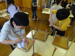 今まで使った椅子やテーブル、ロッカーなどを「ありがとう」と感謝を込めて、お掃除。