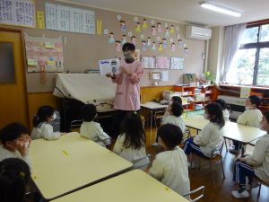 各クラスで“いかのおすし”のお約束や不審者が来た際の合言葉についてお話ししました。