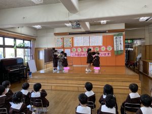以上児のお友達は、お歌の時にホールへ来てお歌のプレゼントをしました。