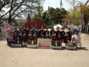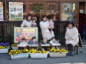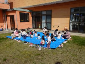 2歳児のたんぽぽ組さんは写真撮影の後、ビニールシートを敷いてお外でおやつを食べました🍪