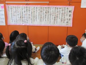 5歳児ひまわり組さんは、音楽会で発表する暗唱の練習を始めました。