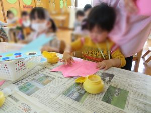 2歳児たんぽぽ組さんは、鯉のぼりの制作をしていました🎏