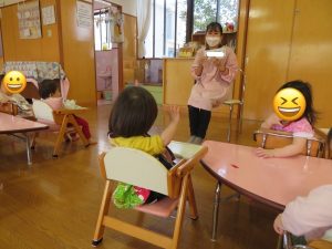 1歳児すみれ組のお友達も手を挙げて元気にお返事ができます🤚