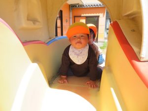 1歳児すみれ組さんは、お外遊びを楽しみました。