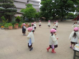 3歳児さくら組さんは、昨日から楽しみにしていたシャボン玉をして遊びました😙