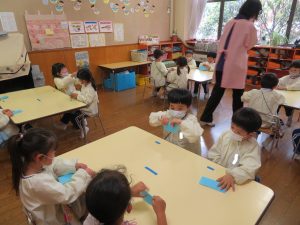 ゆり組さんは、明日行われる「お店屋さんごっこ」のお財布を折り紙で作りました👛