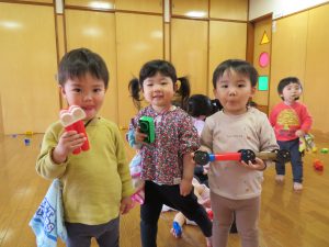 ブロックなどのおもちゃで元気いっぱい遊んでいます。
