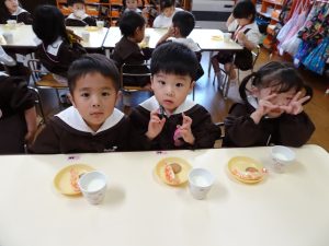 今日は、さくら組さんのおやつの時間をのぞいてみました。