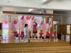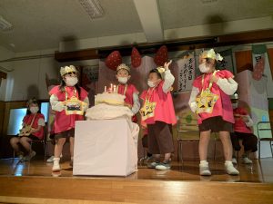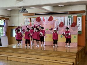 2022.05.24 日々の様子 5月のお誕生会🎉 今日は、5月生まれのお友達のお誕生会を行いました🎊 未満児は4月生まれのお友達も含めて7名、以上児は8名のお友達のお誕生日をお祝いしました🎉 インタビューやキャンドルサービスを楽しみました。 保育園では、お誕生日はお家の人に“こんなに大きくなりました、ありがとう”と感謝の気持ちを伝える日と教えています。 みなさん、お家の方に「ありがとう」を言えましたか? 最後は、お誕生児みんなの可愛らしいお遊戯で会を締めくくりました。 改めてお誕生児の皆さん、お誕生日おめでとうございます✨
