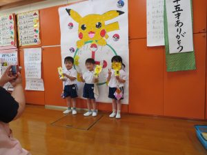 2022.06.02 日々の様子 6月2日(木)🌞 今日も気温の高い1日となりましたね。 今日の子ども達の様子です。 ひまわり組さんです。 「かごめかごめ」かな?と思ったら…組体操の「花火」の練習です🎇 さくら組さんは、明日の「時の記念日の集い」の前に、制作で作った時計を持って写真撮影📸 ゆり組さんは、お外で遊んでいました。 お片付けの時は、使った物を沢山持ってお片付けをしています。 ありがとう、力持ちですね💪