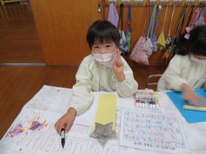 ひまわり組さんは、七夕の短冊に願い事を書きました。