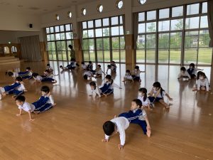 今日、以上児のお友達はHACのため、ひまわりホールへ。