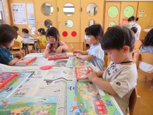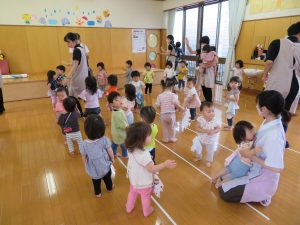 朝のお集りでは、「アンパンマン音頭」や「新潟甚句」の練習をしました。