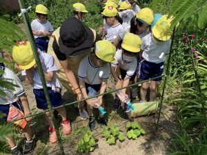 ひまわり組さんは、クラスの野菜にお水をあげていました💧