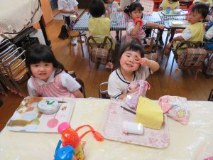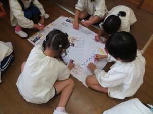 2022.06.24 日々の様子 6月24日(金)🌧 今日は、一時的に雨が降り蒸し暑い1日となりましたね。 少しですが、保育園の様子をお伝えします ひまわり組さんは、古いカレンダーの裏を使ってペンでお絵描きをしています🖍 大きい紙に、自由に絵を描きました😊 さくら組さんは、給食の準備をしています。 これからの楽しい給食の時間を楽しみに、準備をしていました😋 今週もありがとうございました。 来週もよろしくお願いいたします❗