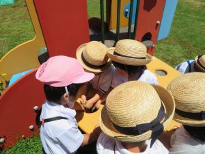 2022.07.08 日々の様子 7月8日(金)🌞 今日は、金曜日です。 1週間、お仕事などお疲れ様でした😉 さくら組さんは、約3カ月ぶりの未満児園舎の園庭へ💨 職場体験で保育園に遊びに来てくれた中学生さんに、沢山遊んでいただきました😆 久しぶりの未満児園舎の園庭を楽しんでいたさくら組さんです。 今週もありがとうございました。 来週もよろしくお願いいたします❗