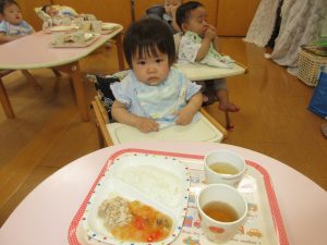 0歳児つぼみ組さんのお友達も、モリモリおいしくいただきました😋