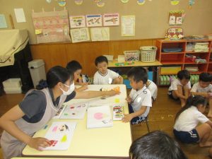 今日は、ゆり組さんが自由画帳や大きい画用紙にクレヨンで絵を描いていました🖍