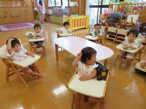 2022.07.27 日々の様子 7月27日(水)🌞 今日も良いお天気になりましたね🌞 今日は、なんと子ども達が大好きな「スイカの日」だそうです🍉 最近は、給食でも出ています❗ 今日も以上児のお友達は、外プールで水遊びをしました。 つぼみ組さんも水遊びをしました😆(写真はありませんが…) ゆったりと過ごした1日でした😊