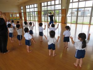 2022.08.02 日々の様子 8月2日(火)🌞 今日も良く晴れた1日でしたね。 明日は久しぶりの雨の予報ですが、どうなるのでしょう。 今日は、未満児のお友達は、外プールに入りました。 以上児は、ひまわりホールでHACがあったので外プールはお休みでした。 それでも、大好きなHACを存分に楽しんだようです👍 さくら組さんの様子です。 専門の講師の先生の動きに合わせながら体を動かしたり、組体操の練習もしました🤸♀️ 講師の先生も子ども達から大人気なので、HACは子ども達に大人気の行事です✨