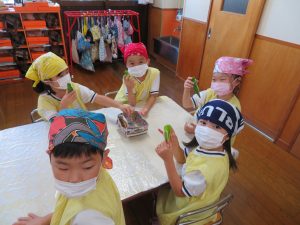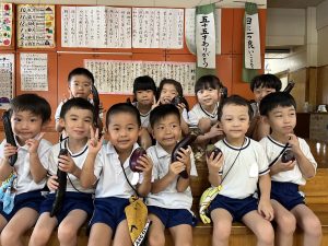 ナスは、ゆり1組さんのクラスの野菜を使いました。