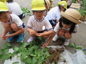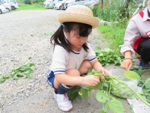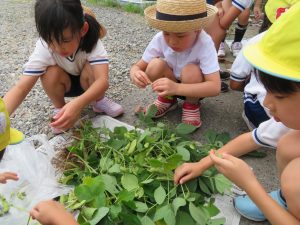 今日は、ひまわり組さんが枝豆の収穫に挑戦しました💪