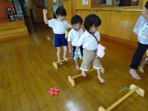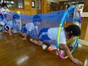 水遊びが終わった後も、ホールで遊びました。