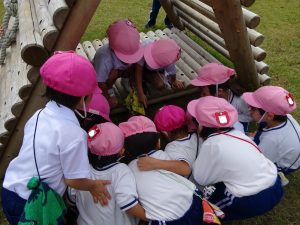 なにやら遊具の辺りに集まって何かを見ています🤔