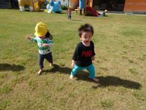 広い園庭をトコトコお散歩しました。かわいいですね😊