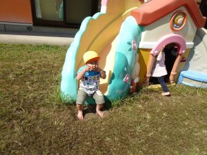裸足で駆け回ったり、すべり台などの遊具で楽しく過ごしました。