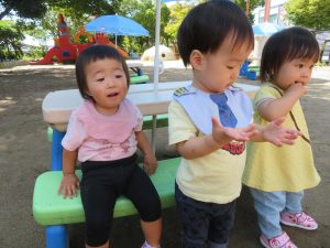 未満児のお友達は、各クラスお外で遊びました。