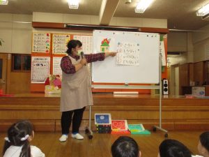 ハロウィンにちなんだ英語を教えてもらい、「ghost(ゴースト)」や「monster(モンスター)」などと元気良く発音していました👻