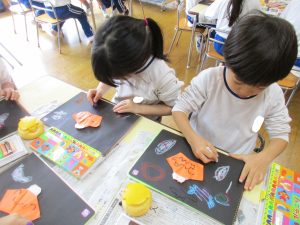10月はハロウィンということで、折り紙でカボチャを作り、おばけやキャンディーなどのハロウィンに関する絵を自由に沢山描きました🎃