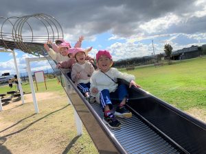 大型遊具の長いすべり台では、数名のお友達が連なって滑りました。