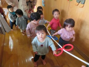以上児のお友達がウキウキツアーの頃、0歳児つぼみ組さんは・・・