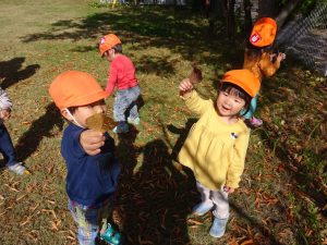 落ち葉の穴から覗いてみたり、遊具の中ではくつろいでいるお友達もいました😚
