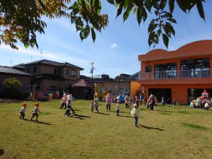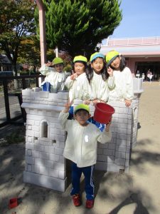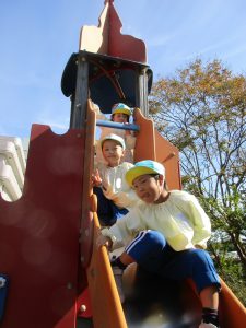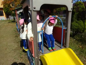 一方、以上児の園庭では、ひまわり組さんとゆり1組さんが遊んでいました。