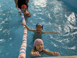 水が苦手な子もいますが、回を重ねるごとに慣れていきます。