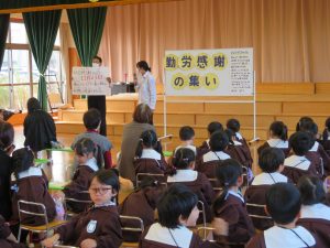 今日は、ひまわりホールで“勤労感謝の集い”を行いました。