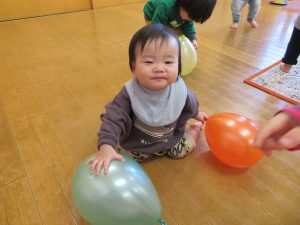 今日、0歳児つぼみ組さんは、風船で遊びました🎈