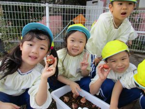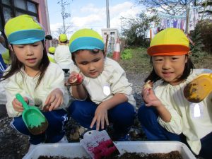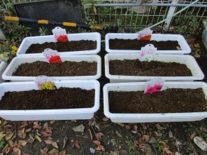今日は、ひまわり組さんがチューリップの球根植えをしました🌷