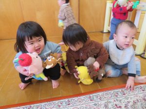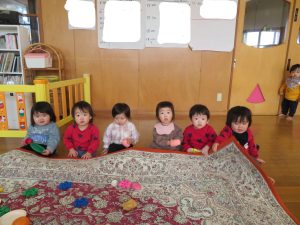 みんなでじゅうたんに足を入れ、こたつのように温まっていました😙