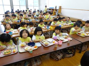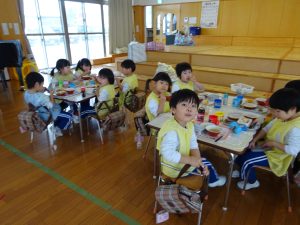 お昼に水道も使えるようになり、おやつを食べ終わってから以上児園舎に戻ってきました。