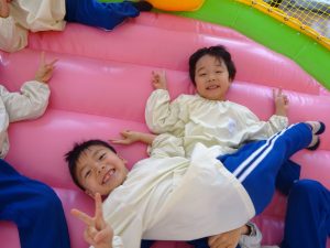 ふわふわドームやホールでリレーをして過ごしました🎈