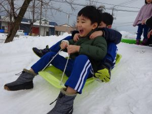 お友達と一緒に滑り、子ども達のとっても楽しそうな表情が見られました😆