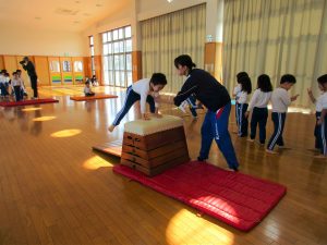 年長のひまわり組さんが挑戦するのは、4段の跳び箱です💪