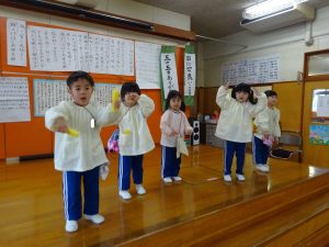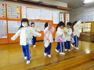 さくら組さんは、ホールでお遊戯をしました。
